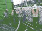 수해로 입은 경원선 라인의 블록담을 해체하고 재설치