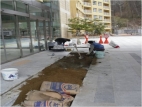 로비 바닥 대리석 철거 작업 후 1차 방수 작업