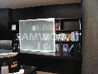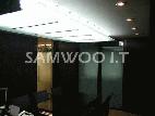 비교적 넓지않은 공간을 최대한 활용하기 위해 벽면 전체를 수납과 간이 집무가 가능한 붙박이형 책장겸 책상으로 제작하였으며, 전면의 벽면은 수납 및 프리젠테이션 시설을 설치하고 2중 슬라이딩 도어를 설치하였다.