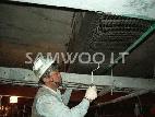 ◆ 공사개요 : 확산2동 장비재배치에 따른 2층 바닥(①~⑧열, ⓑ~ⓖ열)구조에 탄소섬유(2PLY-1266.44M2)를 보강하는 공사로 공장을 계속 가동하면서 천정속 내부에서 기존 설비 및 전기배관의 보양을 철저히 하고 환기에 주의를 요하는 공사임.