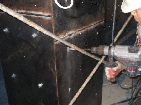 철판보강 앙카부위 천공중