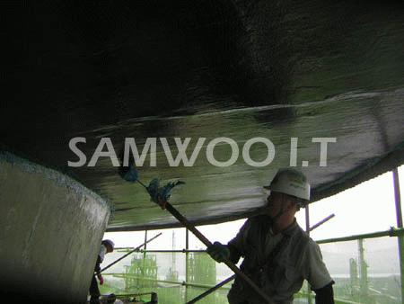 실린더 외부 탄소섬유보강 작업중