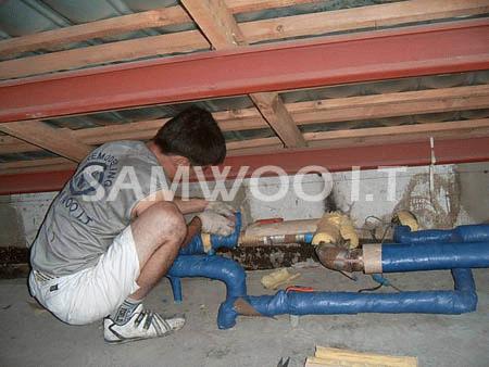 횡주관 열선 시공 중