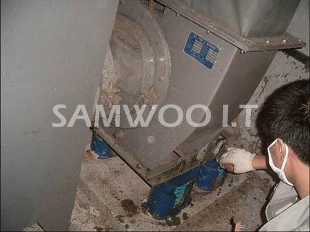정화조 배기휀 고정철물 보수 중