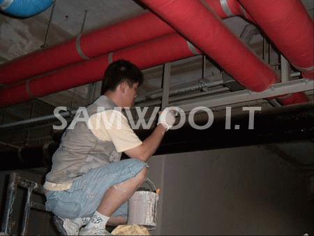 배관가대 도장작업 중