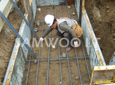 후문 기초 거푸집 설치 및 철근배근