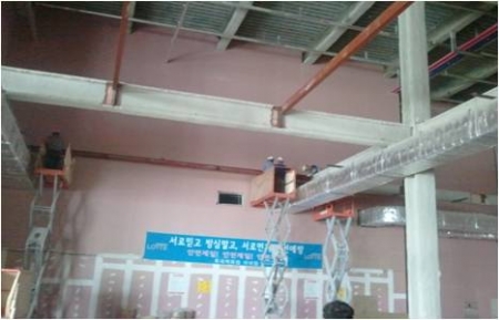 지상9층 행사장 철골 설치 작업중