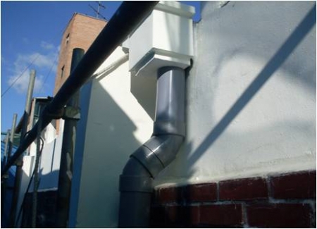 외부 벽체 우수관 설치 작업