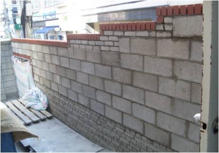 교회동 외부 담장 조적벽 설치 작업