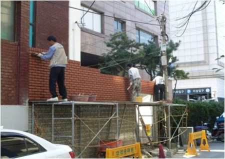 교회동 외부 담장 조적벽 설치 후 메지작업