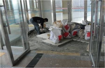 로비 바닥 대리석 철거 작업