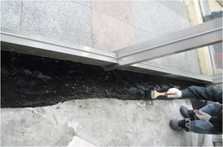 로비 바닥 대리석 철거 작업 후 2차 방수 작업