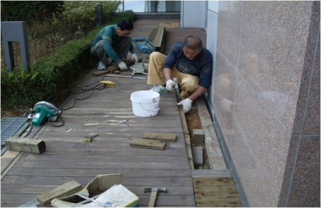 빌라층 외부 방부목 설치 작업