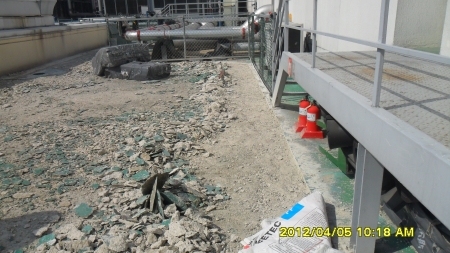 옥상 바닥 철거 작업중