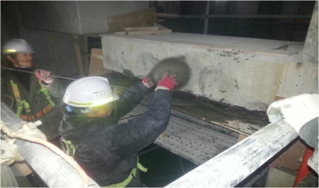 중간 지지보 하부 거푸집 설치 후 몰탈 타설