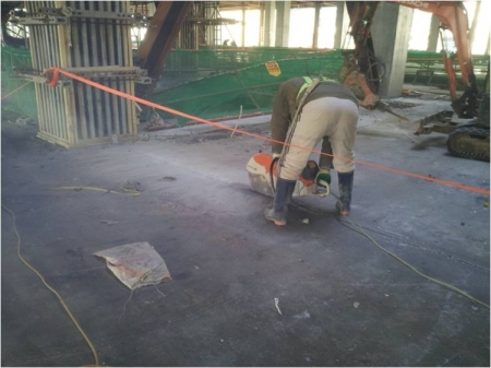 지상2층 슬라브 컷팅 작업
