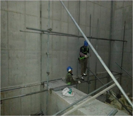 E/V 내부 가설비계 설치 작업
